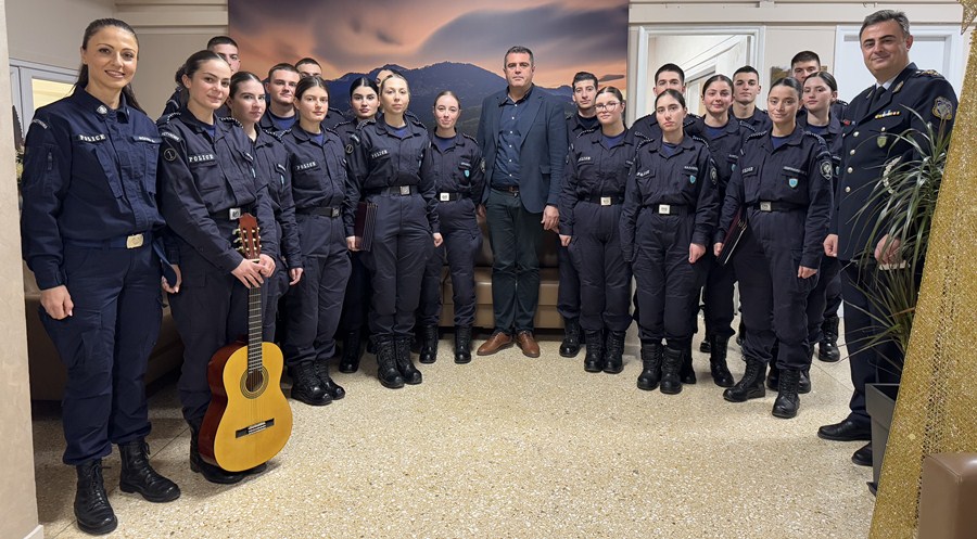 Σε Ιδιαίτερα γιορτινό κλίμα υποδέχθηκε ο Αντιπεριφερειάρχης Καρδίτσας κ.Κων/νος Τέλιος τις παραμονές των Χριστουγέννων, τους δόκιμους της Σχολής Αστυφυλάκων Μουζακίου και του Κέντρου Εκπαίδευσης Στρατονομίας Ρούσσου Καρδίτσας, οι οποίοι έψαλαν τα χριστουγεννιάτικα κάλαντα, γεμίζοντας μελωδίες και ζεστασιά το κτίριο της Περιφέρειας.
