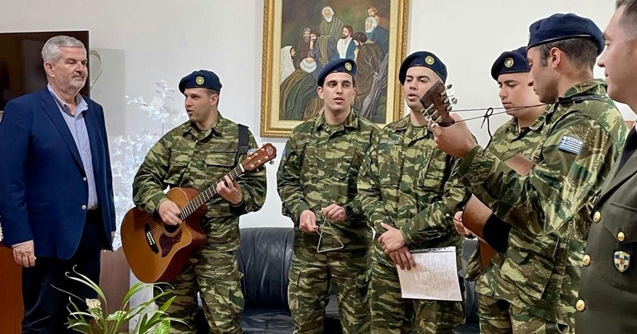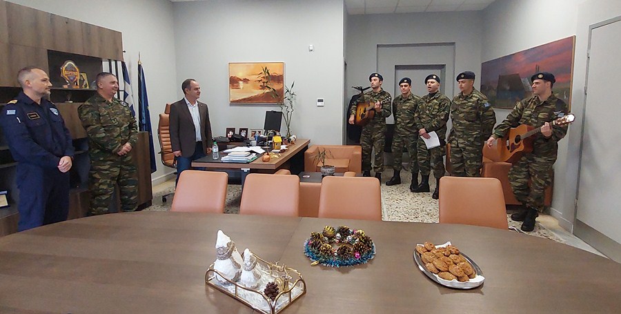 Χριστουγεννιάτικα κάλαντα και ευχές τραγούδησαν το πρωί της Τρίτης 24 Δεκεμβρίου στον Δήμαρχο Καρδίτσας κ. Βασίλη Τσιάκο οι στρατεύσιμοι του Κέντρου Εκπαίδευσης Στρατονομίας που εδρεύει στο Ρούσσο.