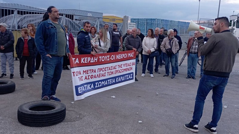 Σε παρέμβαση έξω από το εκκοκκιστήριο όπου εργαζόμενος έχασε το χέρι του προχώρησε την Κυριακή το απόγευμα το Σωματείο Εμποροϋπαλλήλων και Υπαλλήλων σε σχέση Ιδιωτικού Δικαίου Ν. Καρδίτσας με τη συμμετοχή εργαζομένων και από άλλους κλάδους.