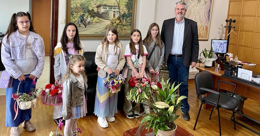 Από παιδικές φωνές πλημμύρισε σήμερα το πρωί το γραφείο του Δημάρχου Σοφάδων κ. Δημοσθένη Κατσή.