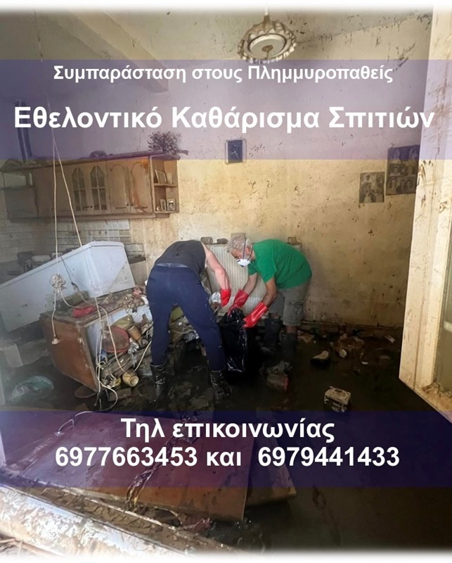 Εθελοντική ομάδα με καθαριστικό εξοπλισμό αναλαμβάνει καθαρισμούς πληγέντων οικιών