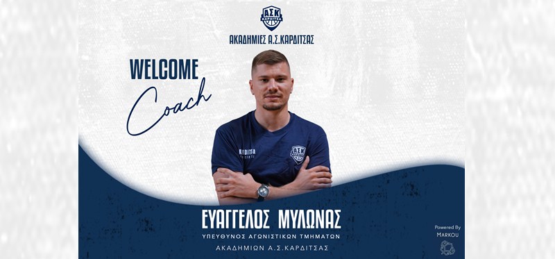 Ο Α.Σ.Καρδίτσας ανακοινώνει τη συνεργασία με τον προπονητή μπάσκετ Βαγγέλη Μυλωνά, ο οποίος αναλαμβάνει ως τεχνικός υπεύθυνος των αγωνιστικών τμημάτων της Ακαδημίας του συλλόγου.