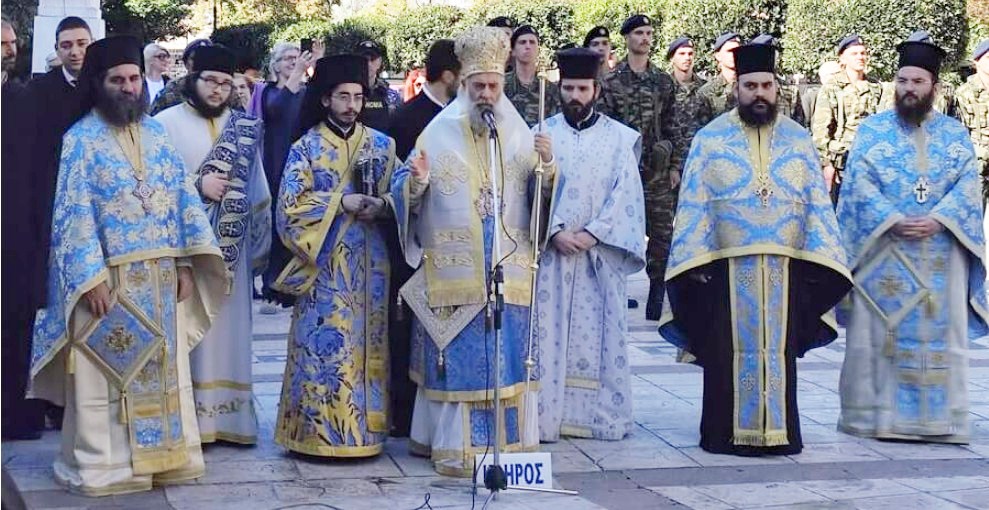 «Η σημερινή ημέρα, αδελφοί μου, είναι αφιερωμένη στη μνήμη των προγόνων μας, οι οποίοι έχυσαν πραγματικά το αίμα τους μέσα σε πολύ δύσκολες και αντίξοες συνθήκες. Γι’ αυτό η Ιερά Σύνοδος της Εκκλησίας της Ελλάδος, την 21η Οκτωβρίου 1952, στη συνεδρίασή της, αποφάσισε να μεταφερθεί η εορτή της Αγίας Σκέπης της Παναγίας Θεοτόκου, που εορτάζεται την 1η του μηνός Οκτωβρίου, να εορτάζεται την 28η, ως ανάμνηση αυτών των μεγάλων γεγονότων, τα οποία οι πρόγονοί μας πραγματοποίησαν για να είμαστε εμείς σήμερα ελεύθεροι.