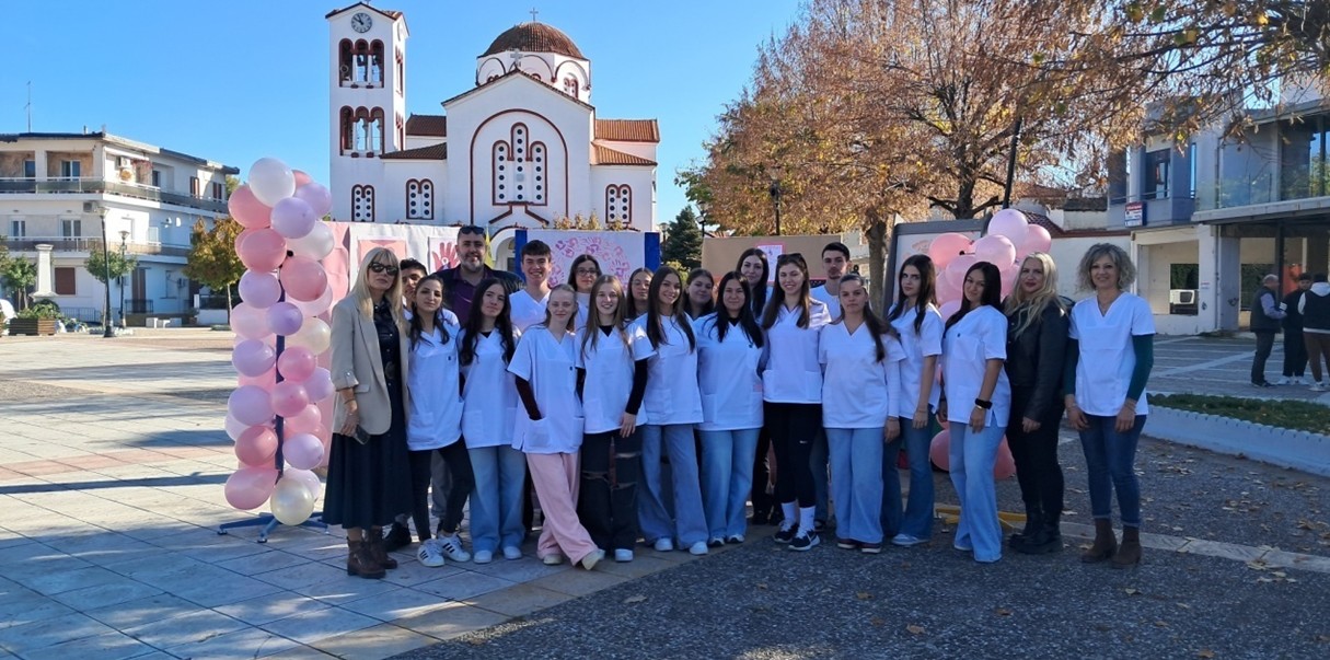 Δράση ενημέρωσης, ευαισθητοποίησης και πρόληψης της τοπικής κοινωνίας του Δήμου Σοφάδων για τον καρκίνο του μαστού, υλοποιήθηκε την Πέμπτη 30/10/2025 από τον Τομέα Υγείας – Πρόνοιας – Ευεξίας του 1ου ΕΠΑΛ Σοφάδων στην κεντρική πλατεία της πόλης, με αφορμή την Παγκόσμια Ημέρα κατά του Καρκίνου του Μαστού.